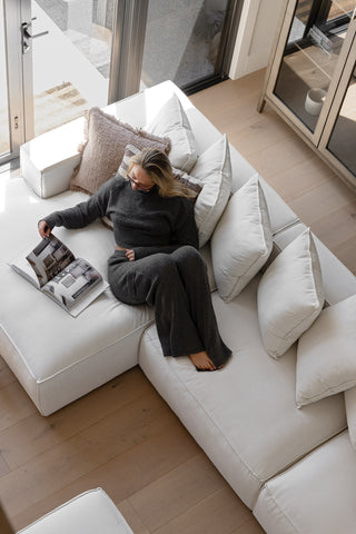 Experience the pinnacle of comfort with this low-sunken modular chaise lounge – the cosiest spot in your home. Sink into its irresistibly plush cushions, designed to cradle you in softness, while the included ottoman adds versatility as a coffee table or extra lounging space. Every inch of this lounge invites you to relax, stretch out, and unwind like never before. With its laid-back design and endless configuration options, it’s not just a lounge – it’s your new haven of ultimate comfort.