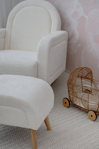 Characterised by its Boucle Fabric and soft, elegant curves - The Mellow Rocker is destined to make the most elegant statement to your nursery, while providing the most plush and unparalleled cloud-like comfort experience.